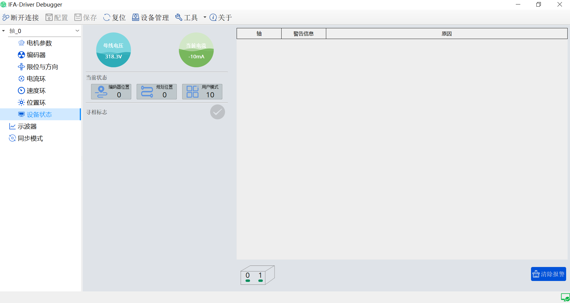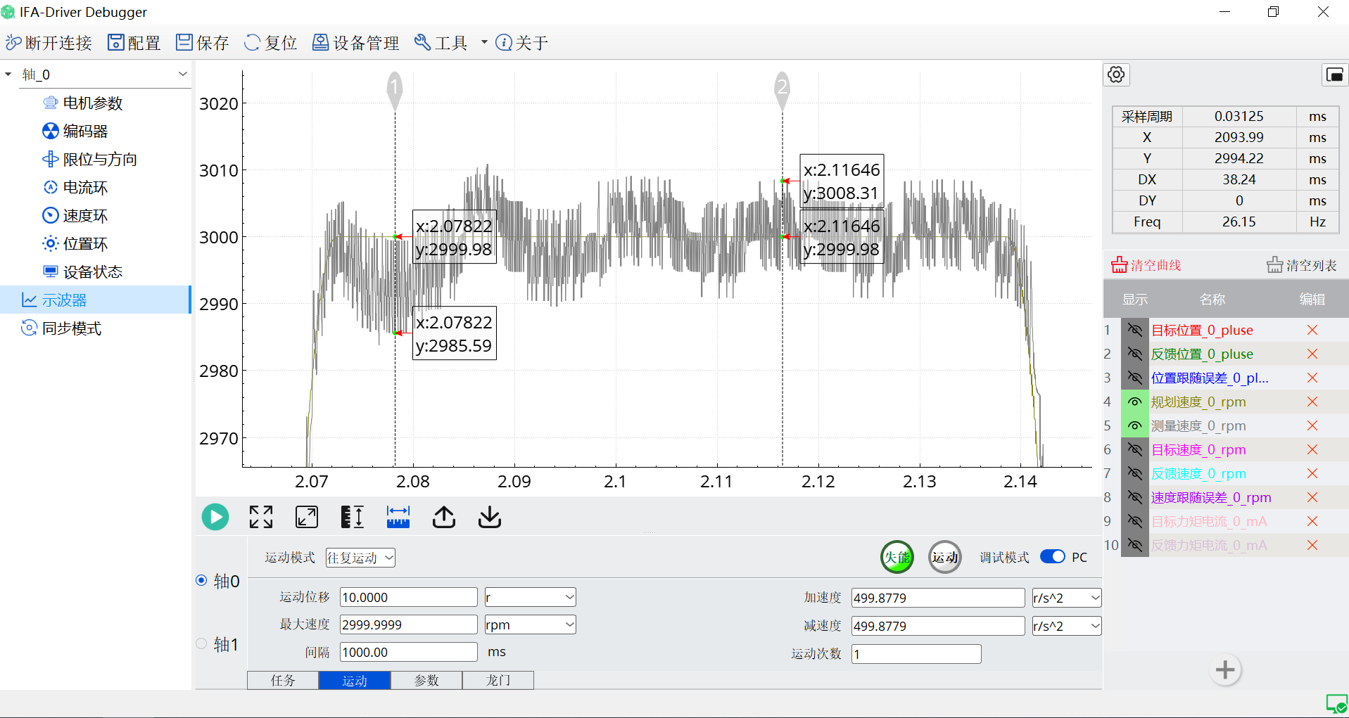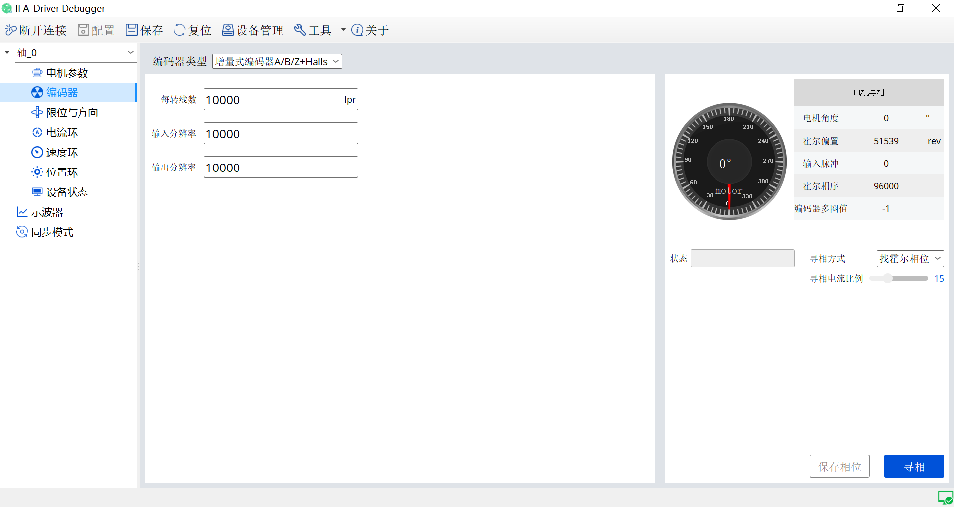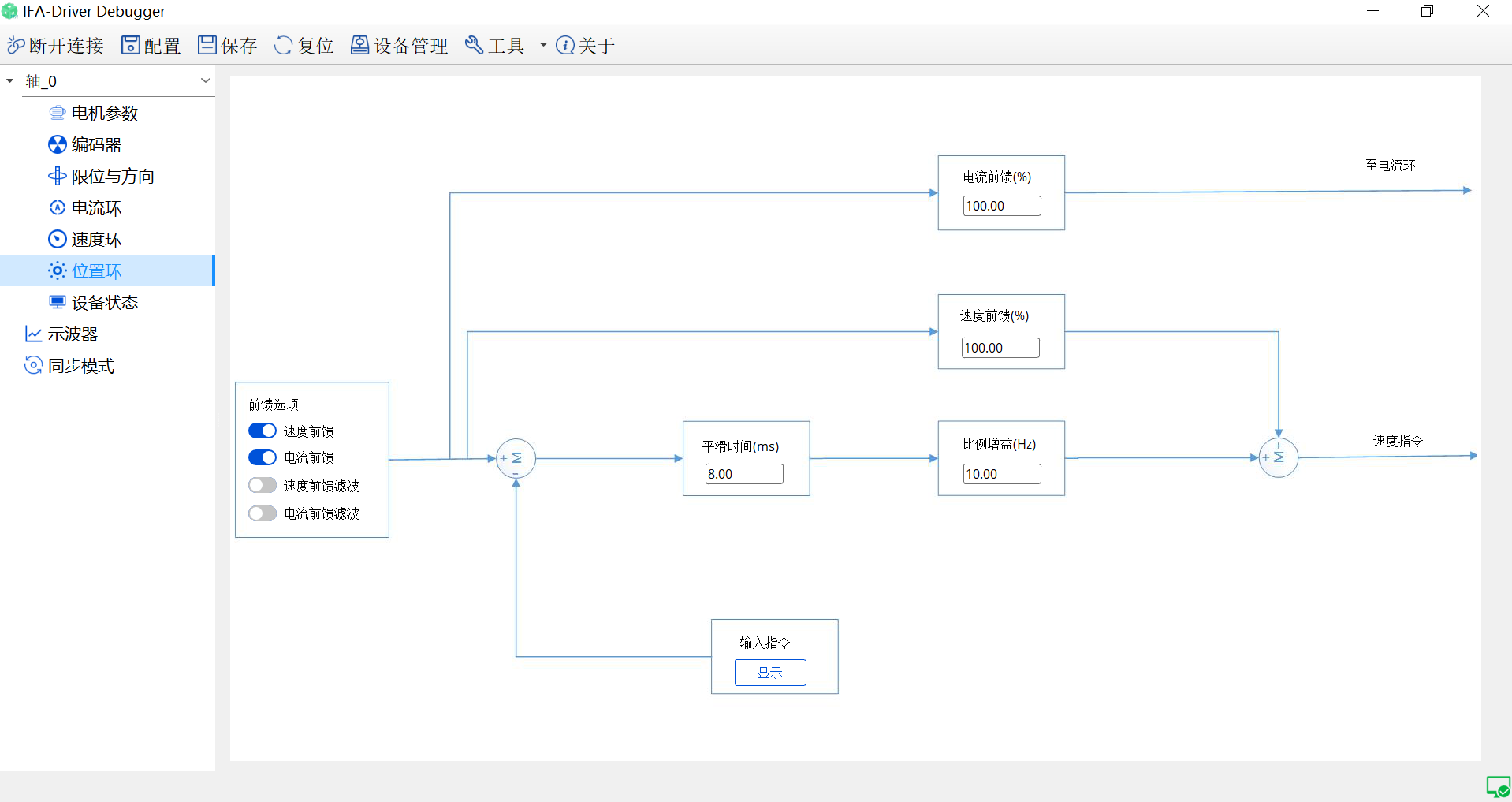 伺服驱动调试工具是针对伺服控制器进行配置、测试、监控的一款工具。它允许用户根据特定的电机和应用需求设置驱动器的配置参数,如电机、编码器参数以及相关的增益设置。另外用户可以动态地调整参数以优化伺服性能,如调整各个环路参数、增益后在示波器中对电流环、速度环、位置环、电压测试等观察对应的曲线。它还可以实时监测设备是否有警告信息如过流、过温、过压等。可以导出当前的设备配置,以便在需要时快速导入到其它相同规格的设备中。